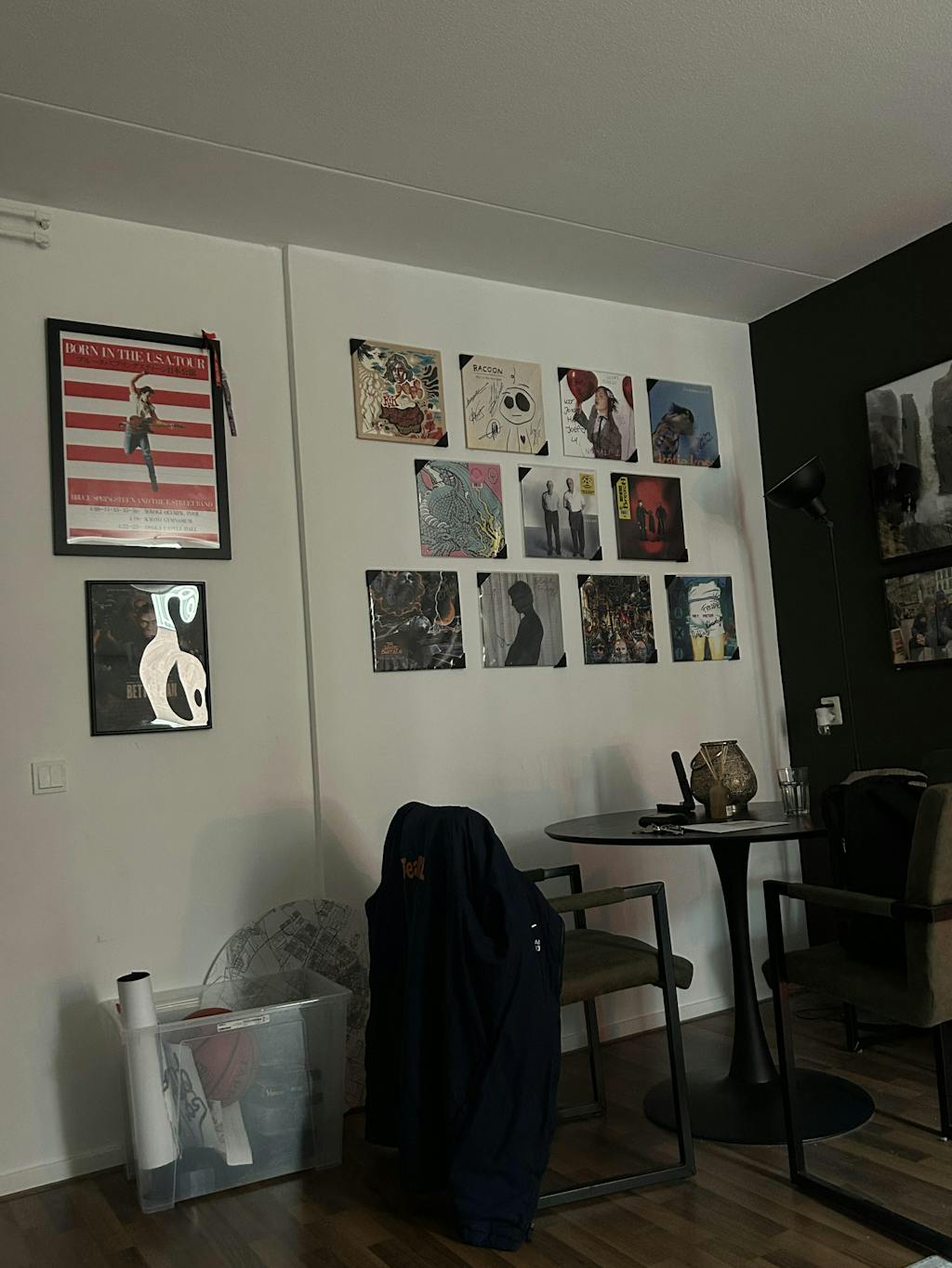 Hanging an LP without drilling is easy with our clever hanging system. The system consists of two sturdy corners with strong tape on the back. Place one corner in the lower right corner of the album cover and one in the upper left corner. Remove the protective film and press the cover firmly against the wall for at least thirty seconds. The system is strong and safe to use. To be safe, remove the record from the sleeve to allow the tape to harden properly. This way, you can hang your LPs and vinyl records quickly, securely, and without drilling.